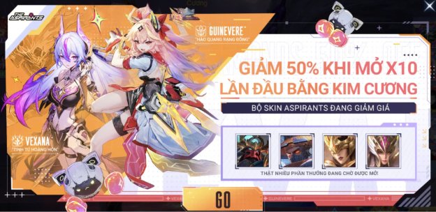Trong 10 lượt rút đầu tiên, đảm bảo nhận 1 skin Epic hoặc cao hơn( Không bao gồm Vexana – Twilight Star và Guinevere – Daybreak Halo).