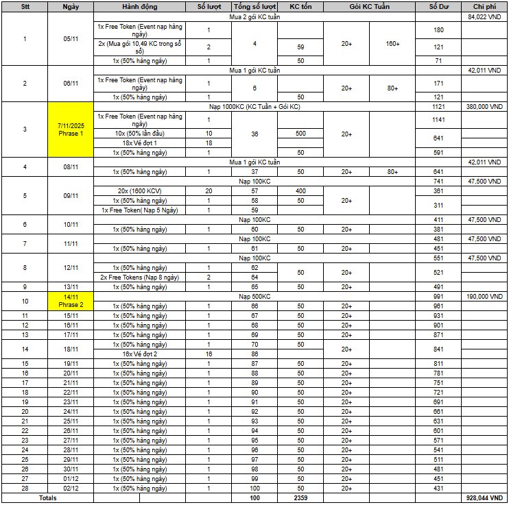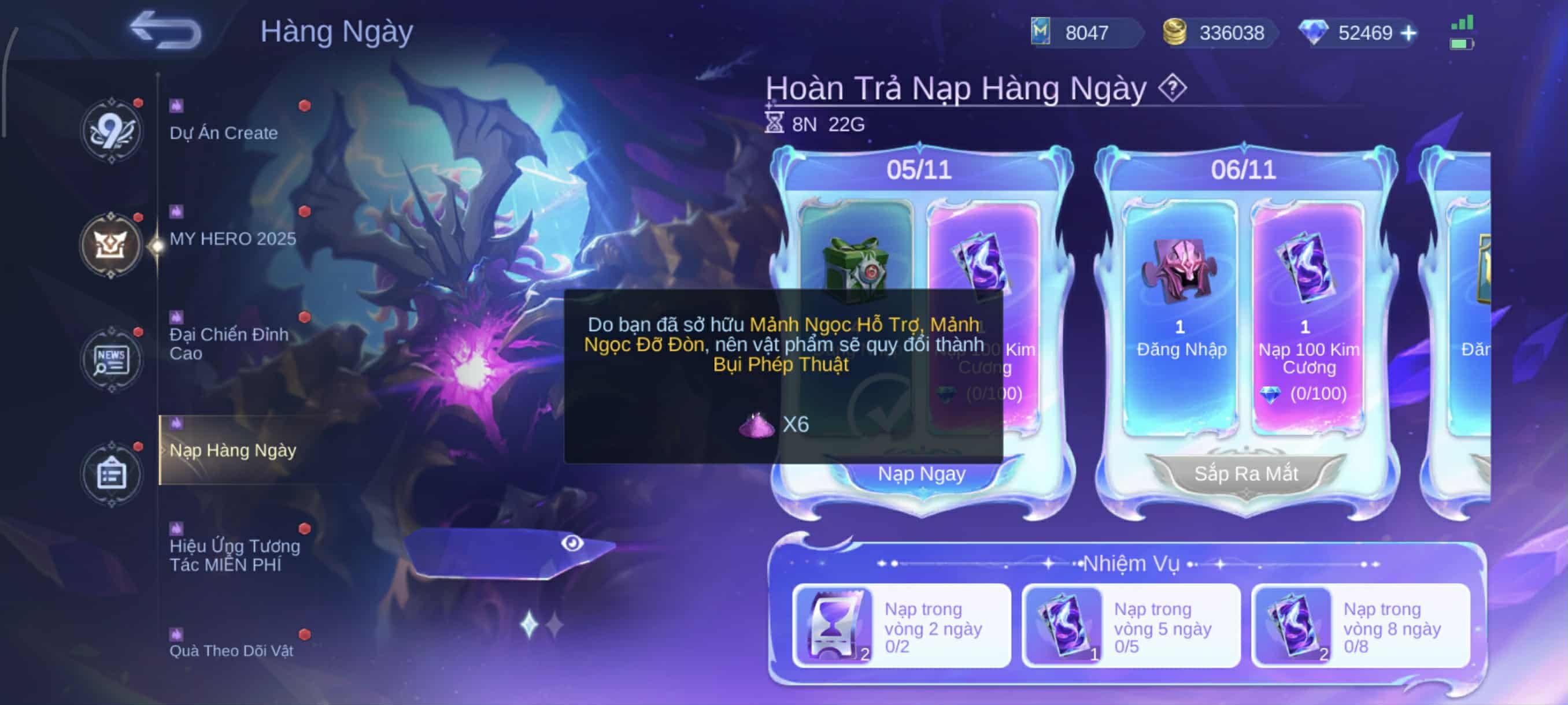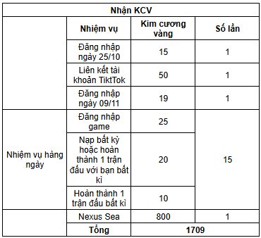 💎 Nhận kim cương vàng khi hoàn thành nhiệm vụ từ ngày 20/10-9/11