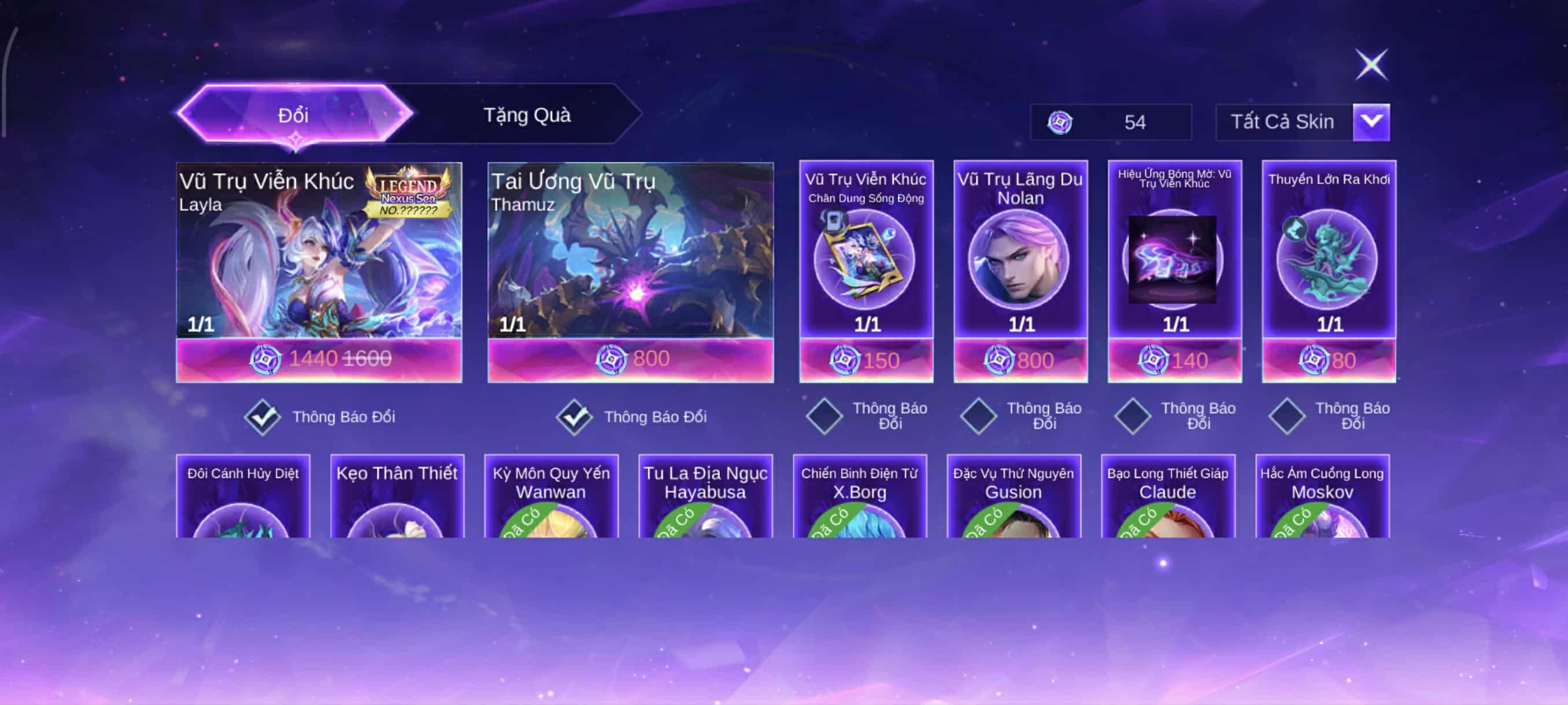Ngoài Skin Layla, chúng ta có thể đổi được rất nhiều vật phẩm hấp dẫn khác
