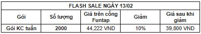 Flash sale(13/02) : Ưu đãi giảm giá 10% gói Kim cương tuần (Mỗi tài khoản tối đa 3 gói)
